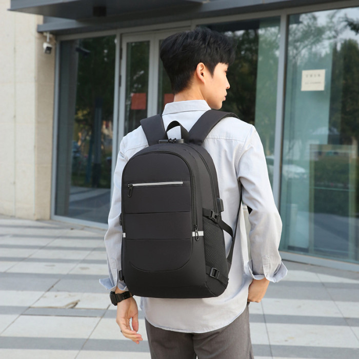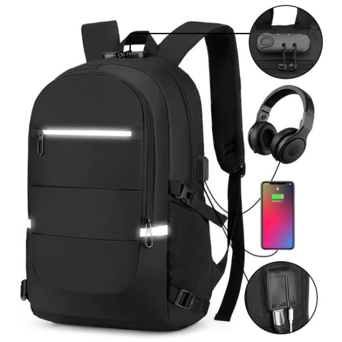 電腦後背包筆電簡約風商務旅行雙肩包大容量密碼鎖反光條上課書包