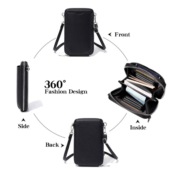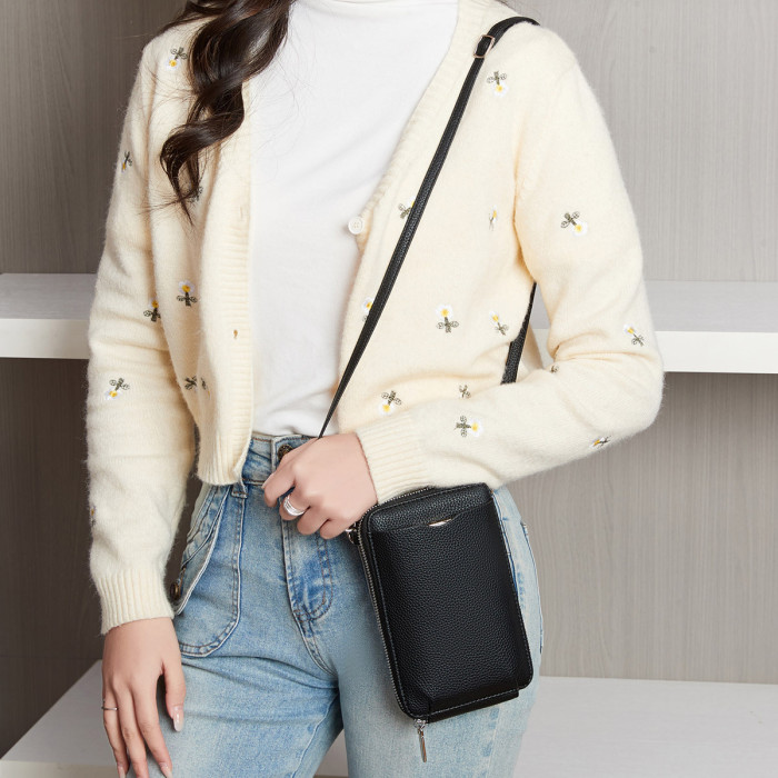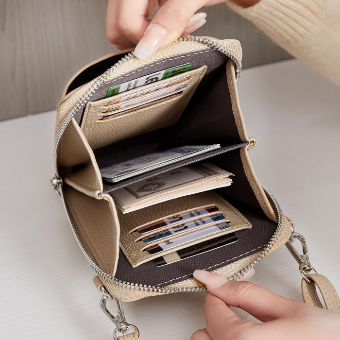 新款荔枝紋竪款拉鍊手機包迷你大容量女士單肩包斜後背包