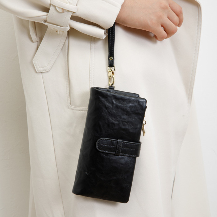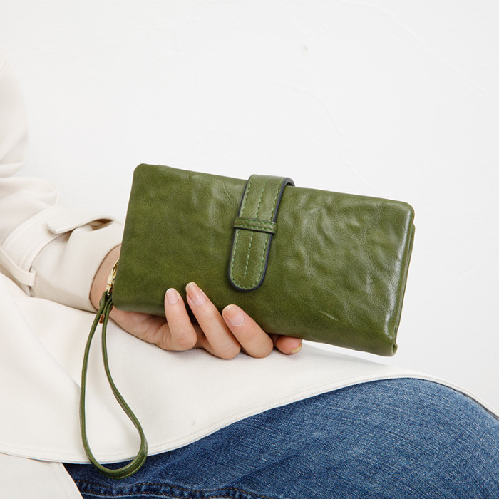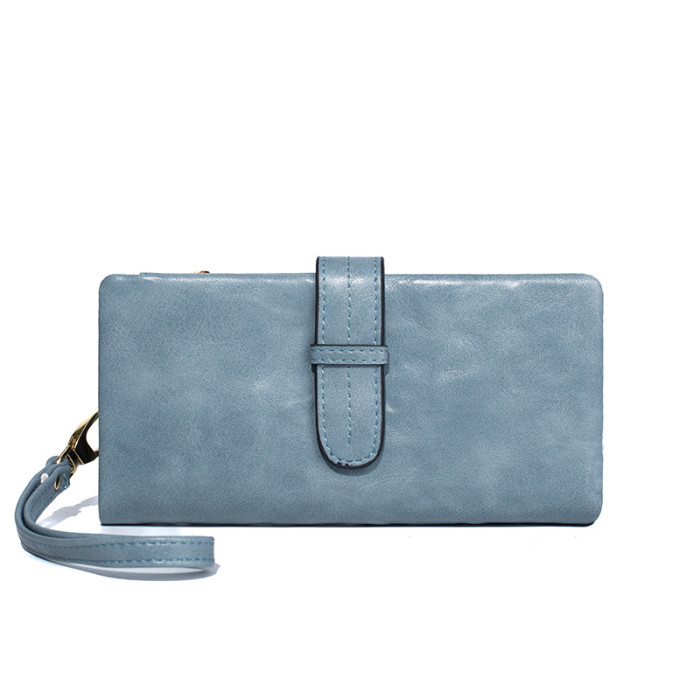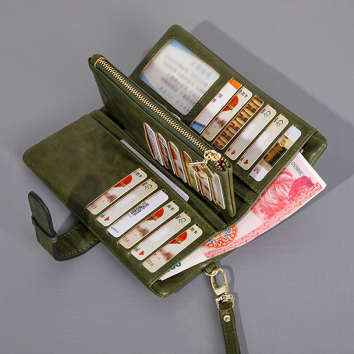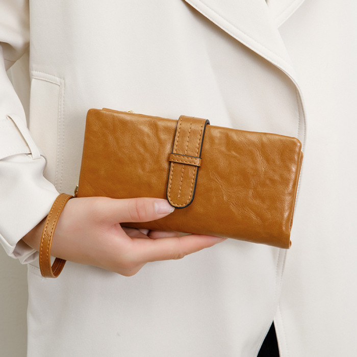 復古純色可攜式女士長錢包2024春季新款大容量卡包簡約時尚手拿錢包