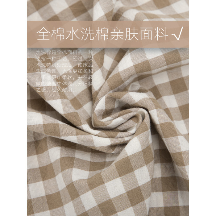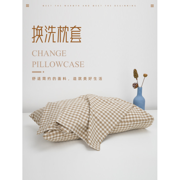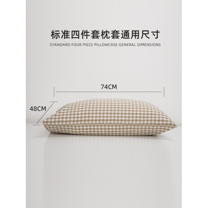 【枕套單衹】卡其小格