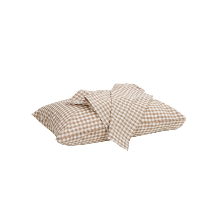 【枕套一對】卡其小格
