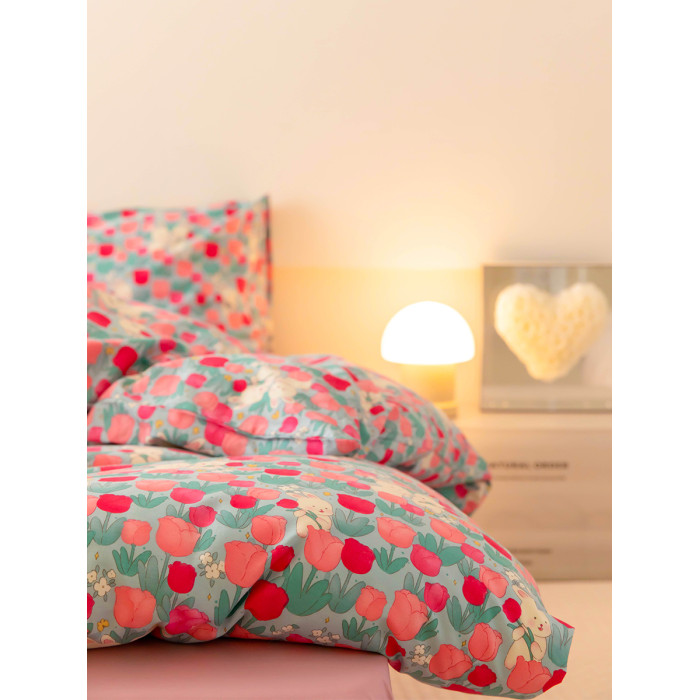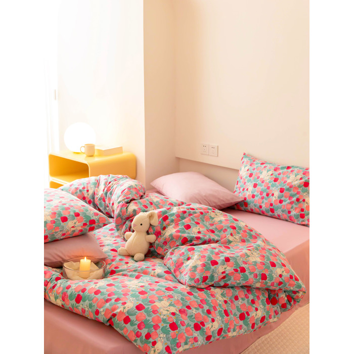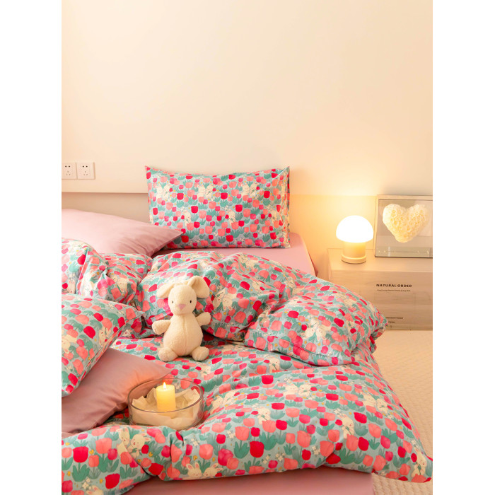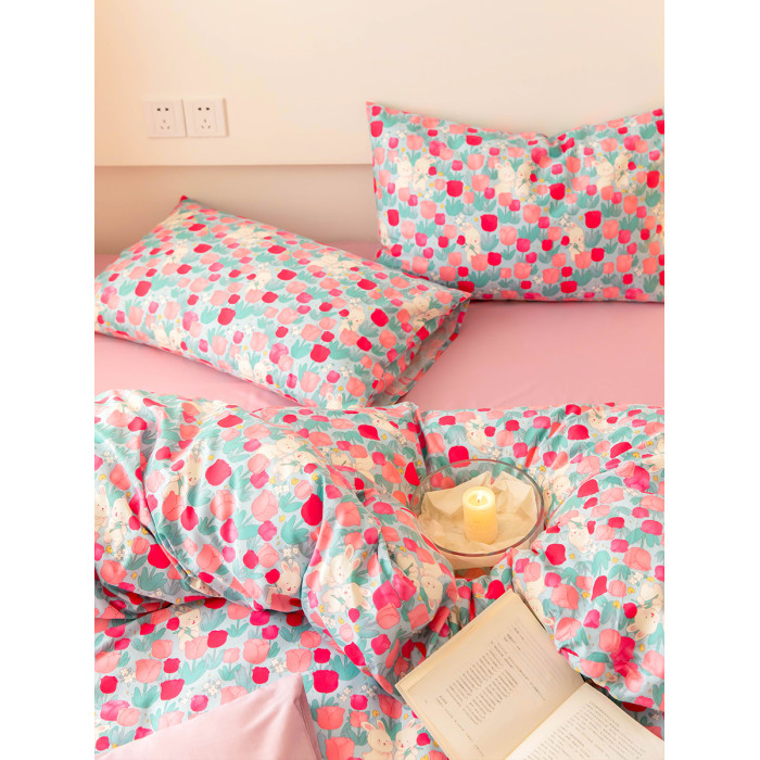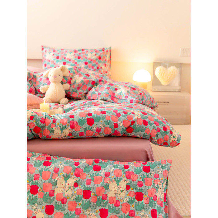 紅色鬱金香兔子純棉全棉被套四件套單人宿舍150x200x230c雙人被罩