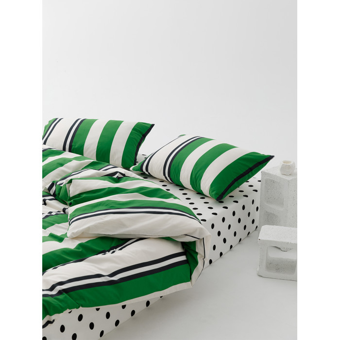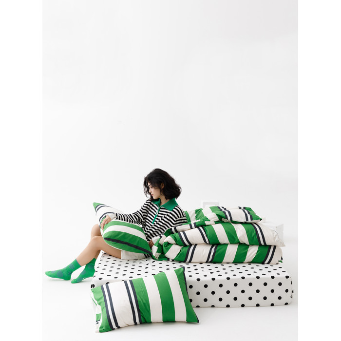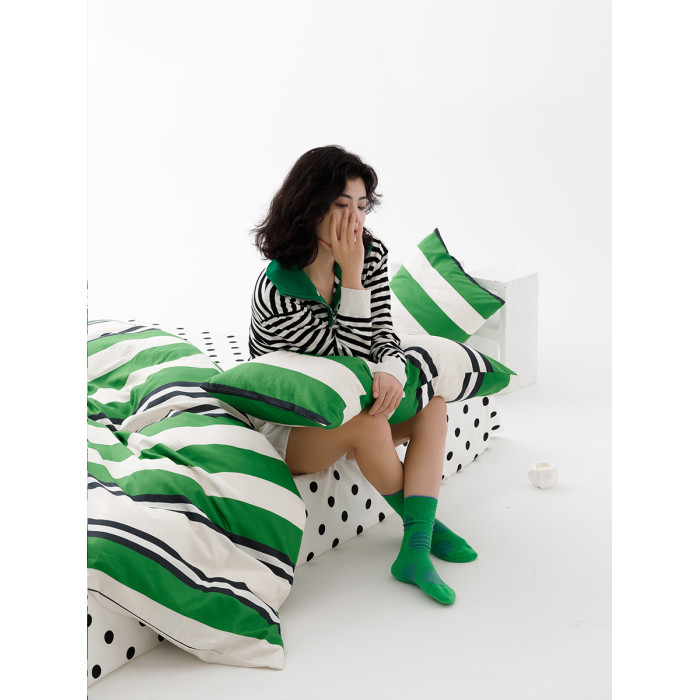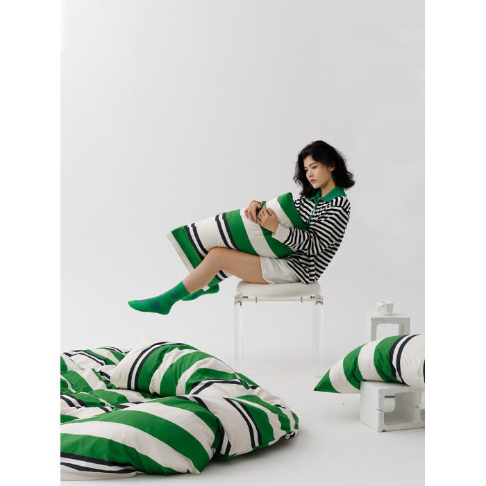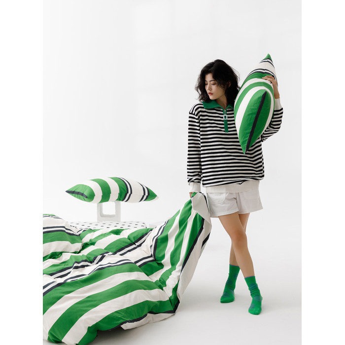 小衆設計師純棉全棉被套四件套簡約條紋綠色床上用品雙人被罩單件