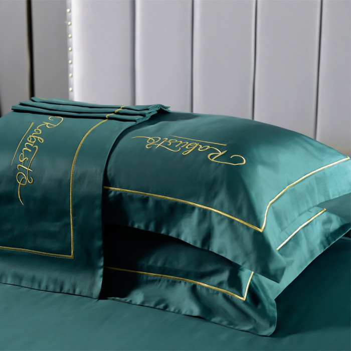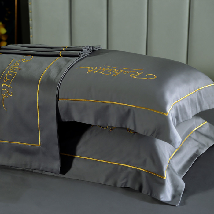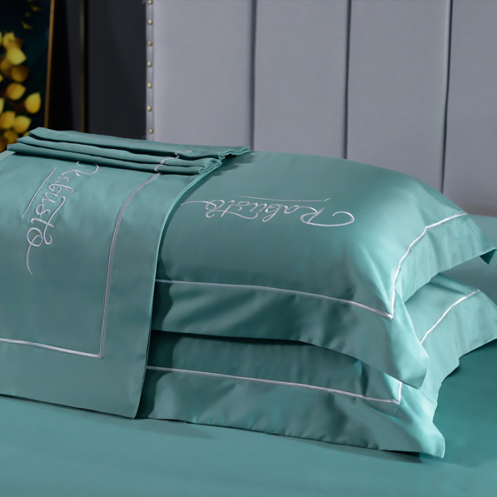 高級80支貢緞長絨棉枕套一對裝全棉枕頭套簡約刺綉純棉枕皮枕芯套