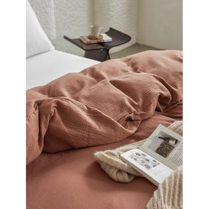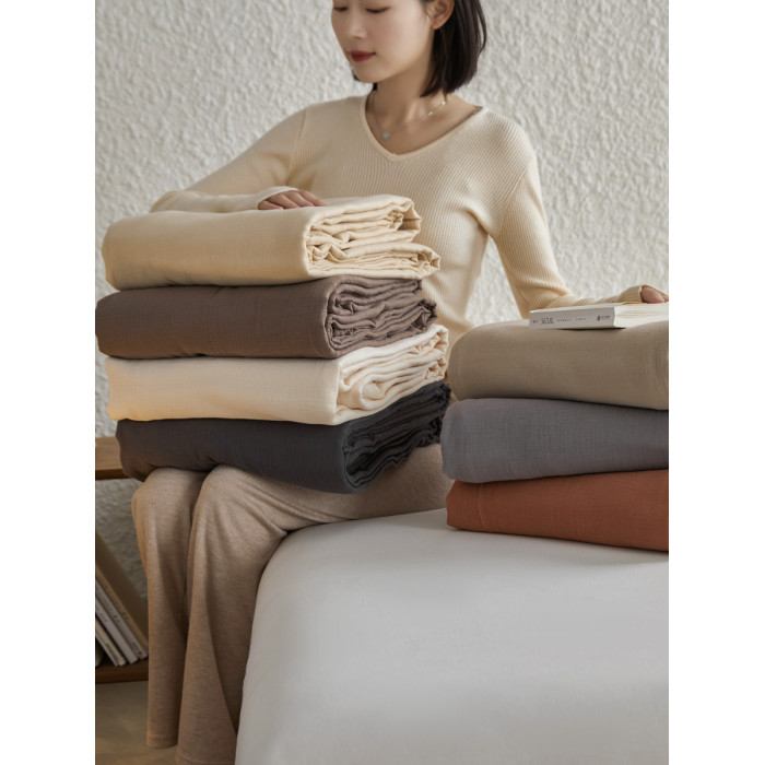 莫蘭迪色系全棉縐紗雙層紗被套單件 A類純棉紗布200x230雙人被罩