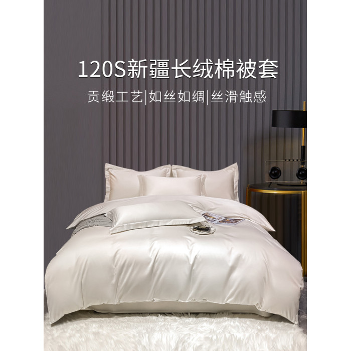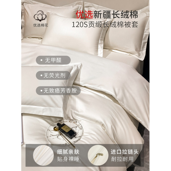 120S純色高支長絨棉被套單件純棉被罩全棉180x200x230白色三件套