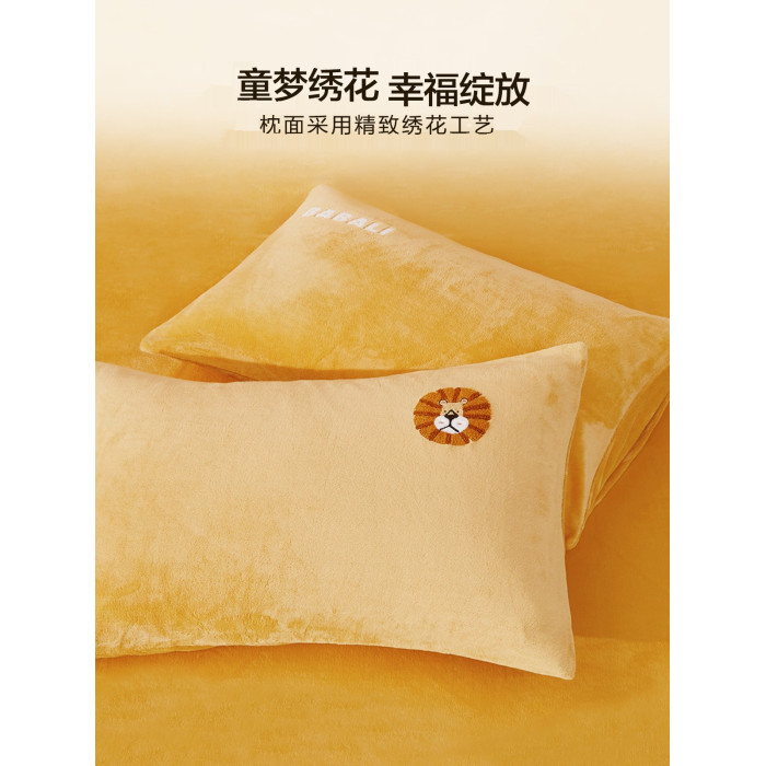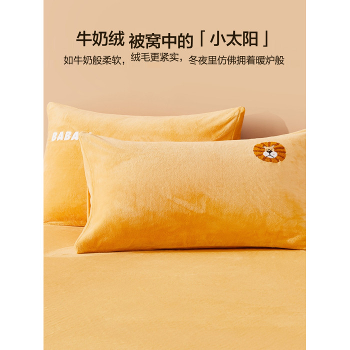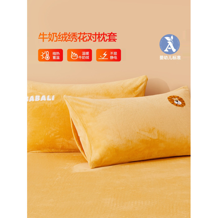 水星家紡牛奶絨枕套一對裝暖絨卡通抗靜電對枕套宿舍枕頭套74x48