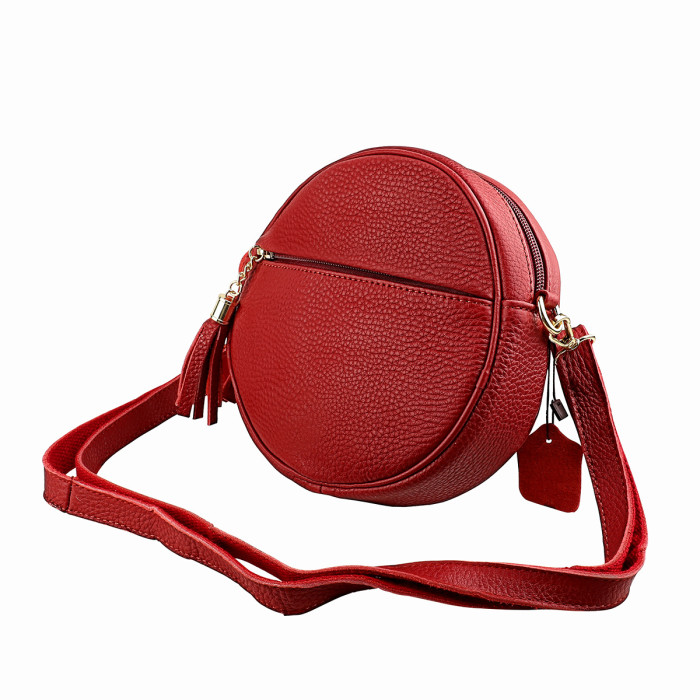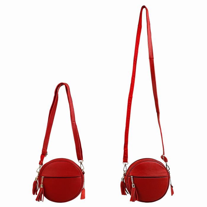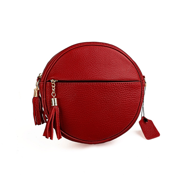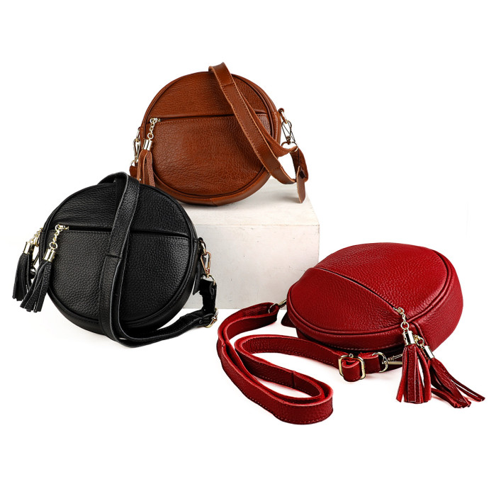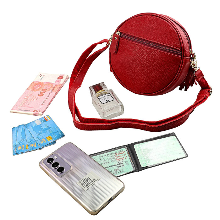 新款頭層牛皮手機包女士單肩包休閒潮流百搭收納圓形斜後背包帶流蘇