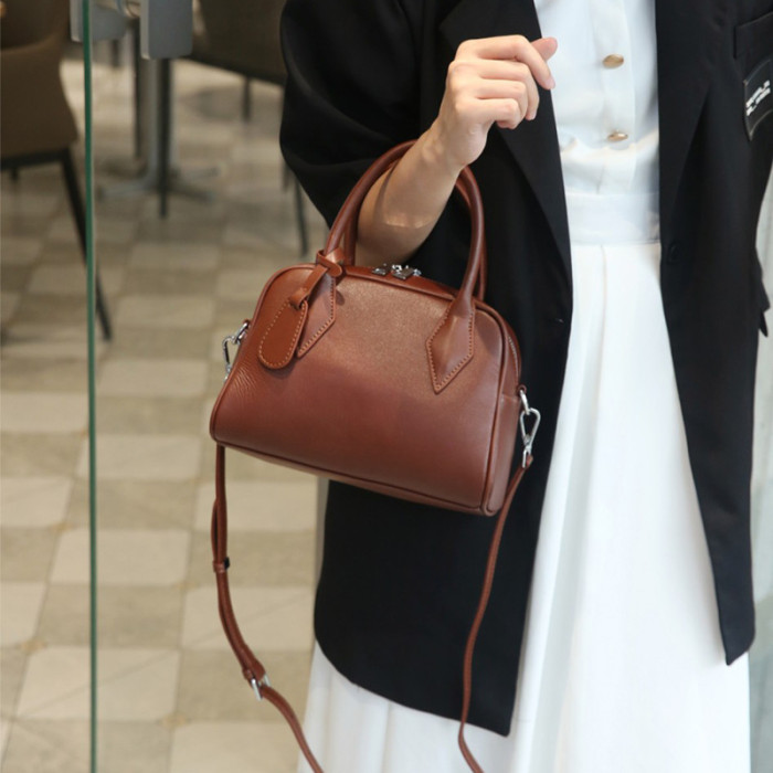 真皮包包夏季高級感小衆枕頭包頭層牛皮手提單肩斜背女包保齡球包