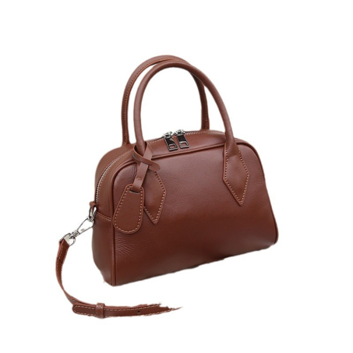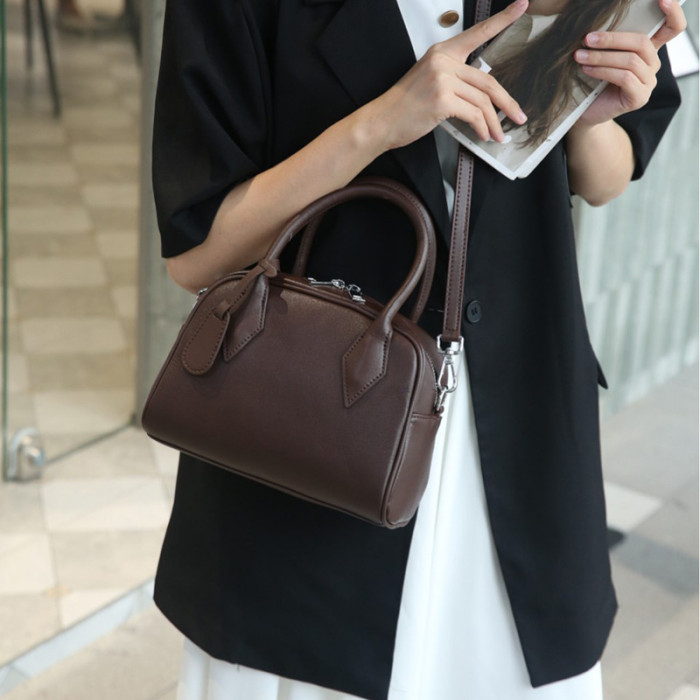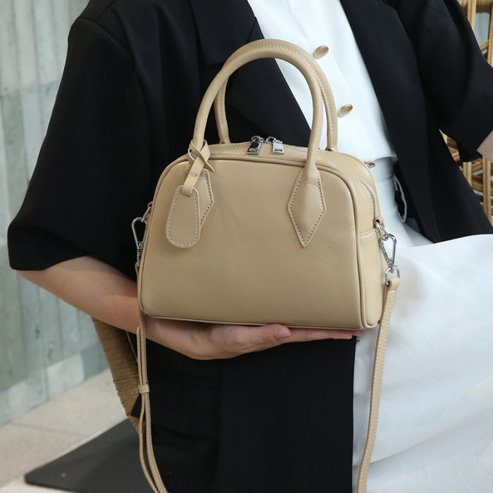 真皮包包夏季高級感小衆枕頭包 頭層牛皮女包手提單肩斜背保齡球包
