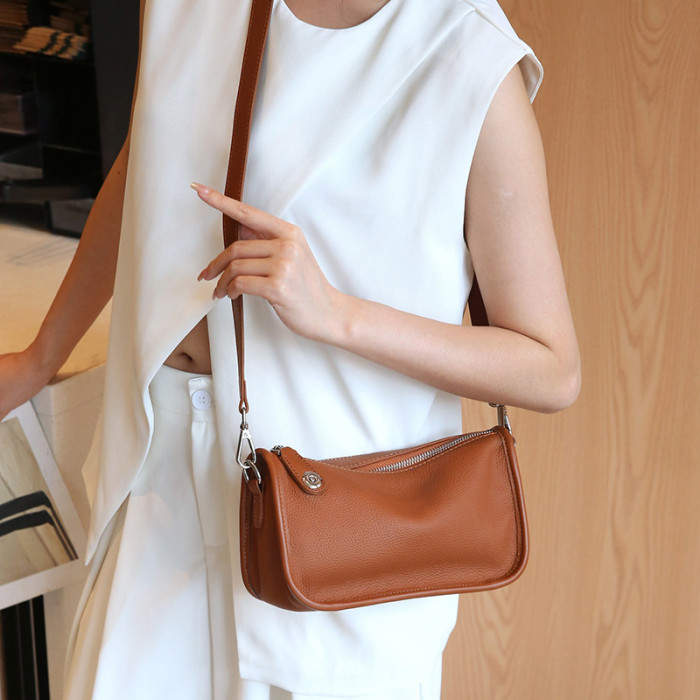 真皮餃子包女2023新款復古通勤高級感女包小衆單肩時尚斜背小包包
