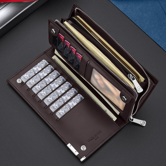 保羅錢包男士長款真皮多卡位大容量拉鍊手拿包2023新款卡包皮夾男