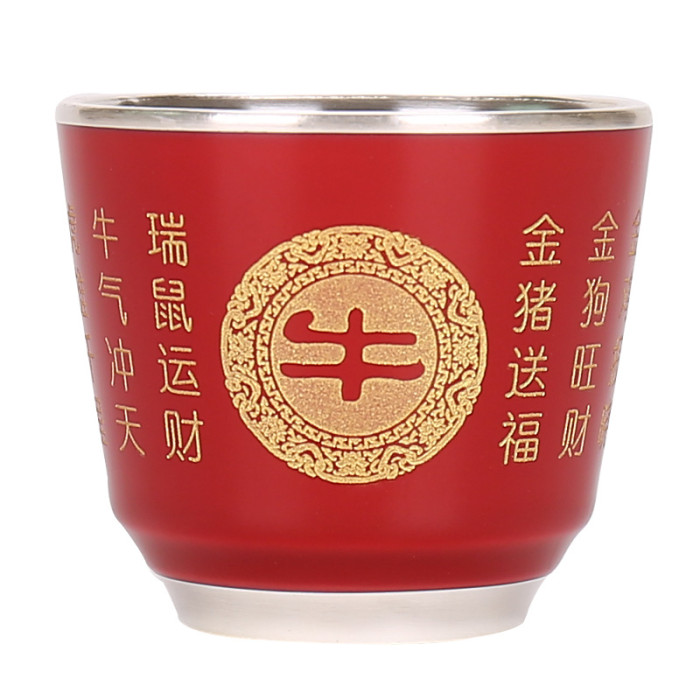 復古十二生肖杯鎏銀杯999純銀品茗杯手工主人杯個人單杯單個茶盞