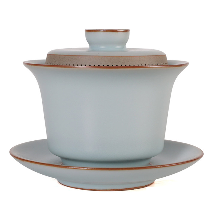 360度出水大號汝窰三才蓋碗防燙汝瓷自帶過濾簡約陶瓷天青手抓壺