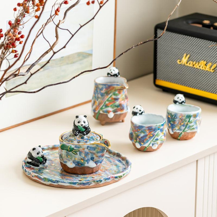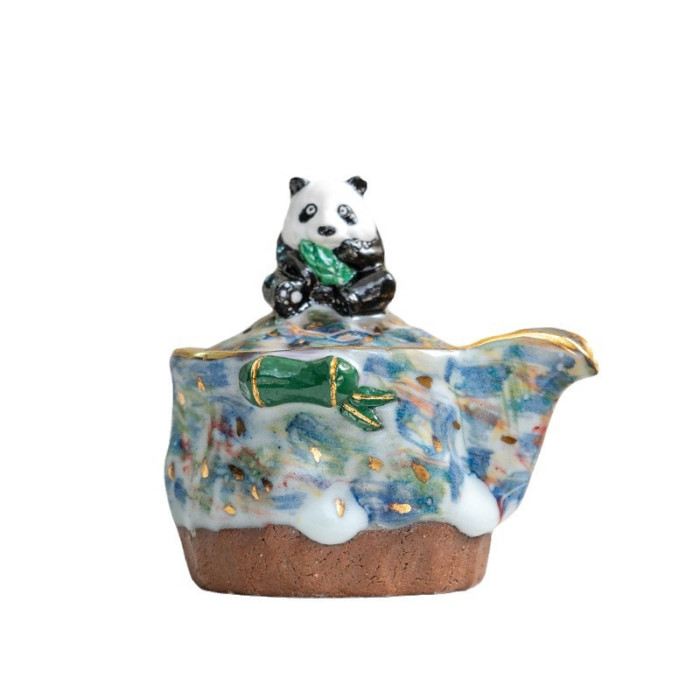 七彩志野熊貓寶瓶壺巖礦日式純手工復古粗陶茶壺蓋碗手抓泡茶壺