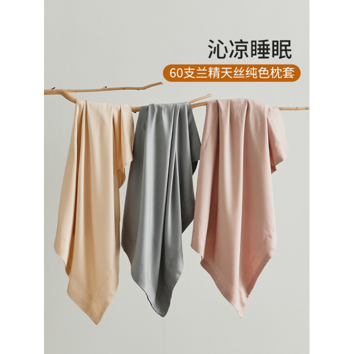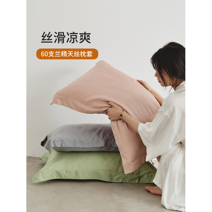 60支天絲純色枕套一對裝萊賽爾涼感親膚枕頭套家用冰絲枕罩枕芯套