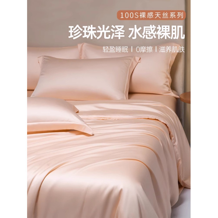 夏季粉色真絲被套單件裸睡絲滑天絲被罩高檔奢華冰絲涼被單三件套