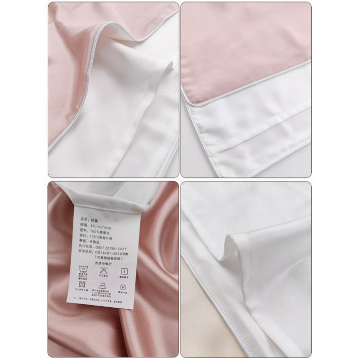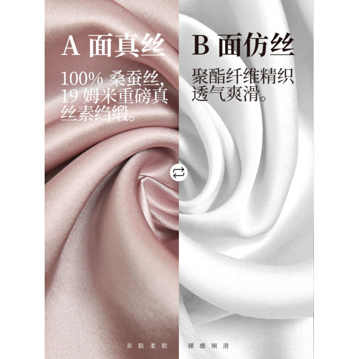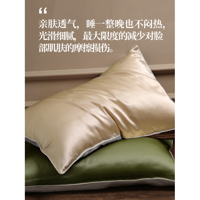夢灣裡19姆米100%桑蠶絲AB面真絲枕套絲綢禮物男女一對裝48x74cm