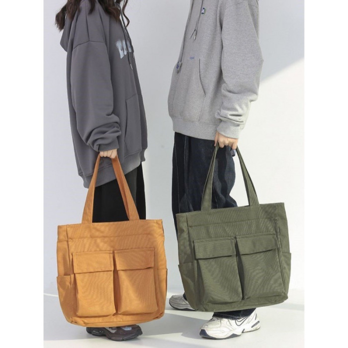 帆布包復古大容量手提單肩包男女休閒旅行包韓版ins工裝風