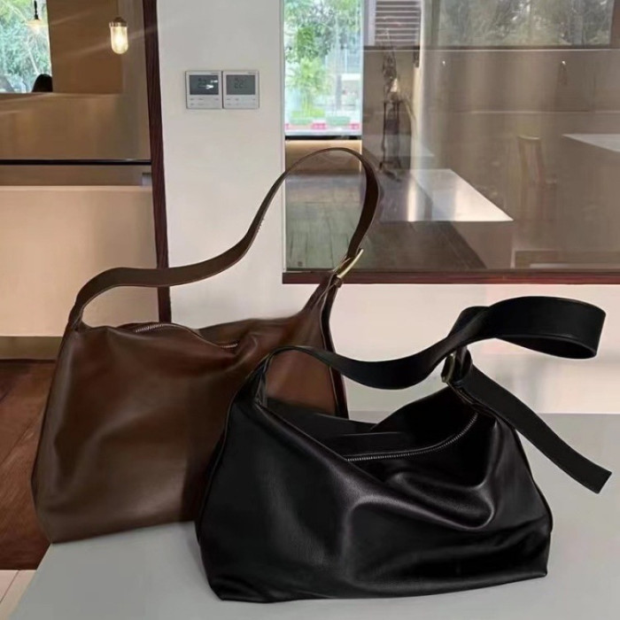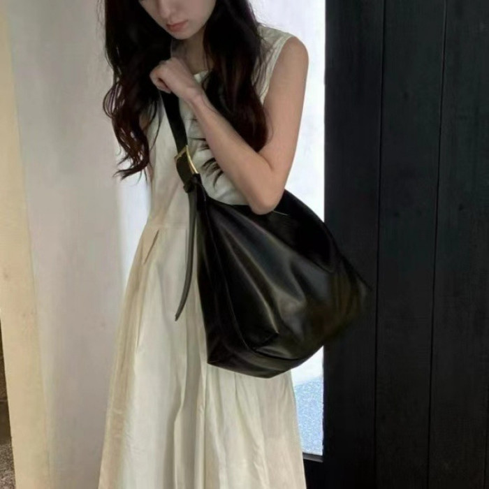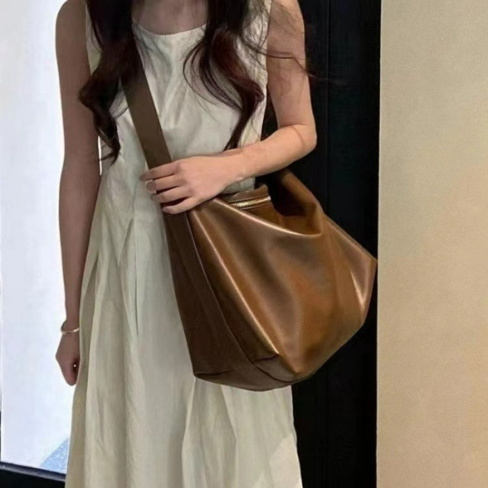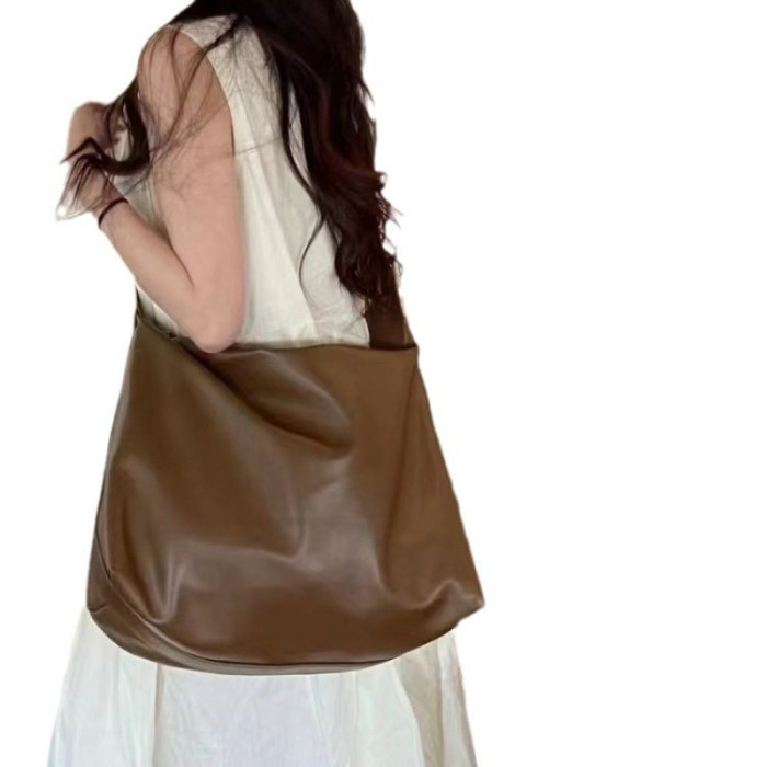 純色復古托特包高級感大包包2023新款通勤百搭單肩包大容量斜後背包