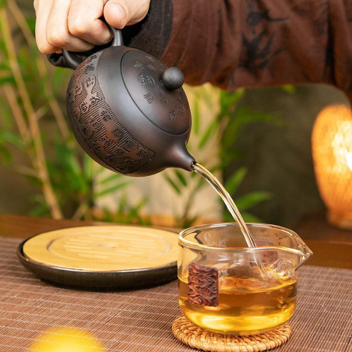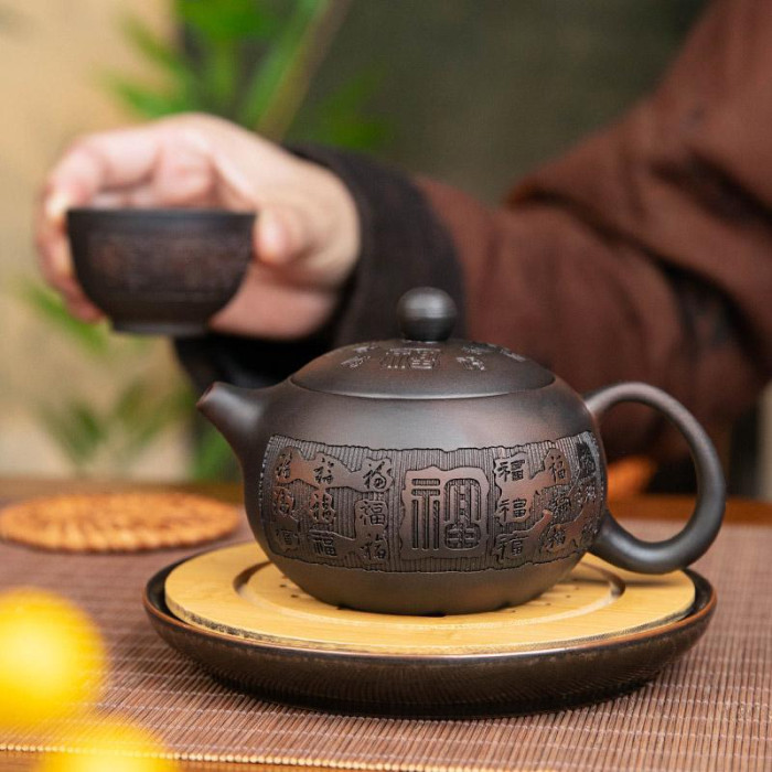 顔色 紫陶百福西施茶壺一壺兩盃【禮盒裝】