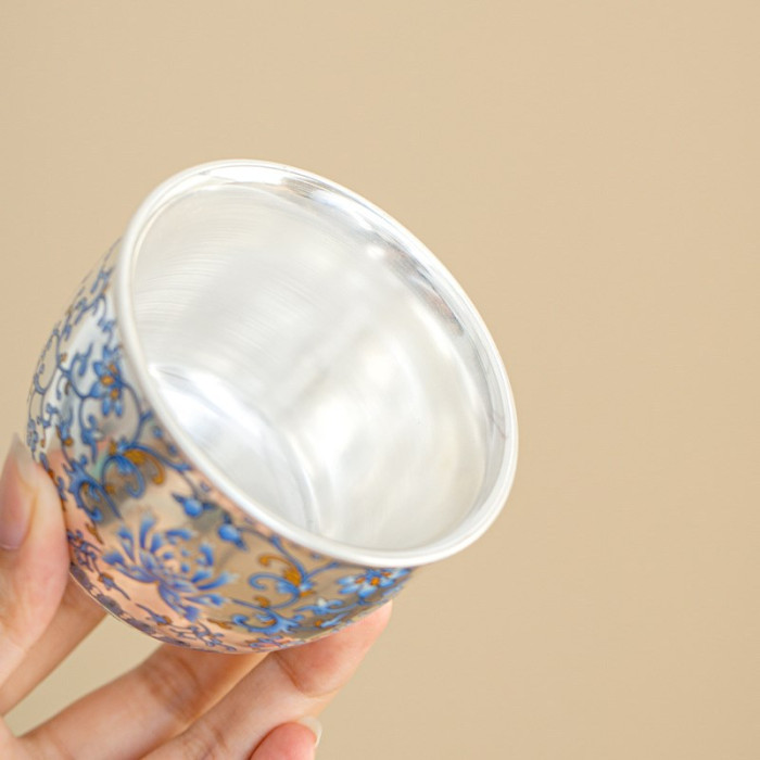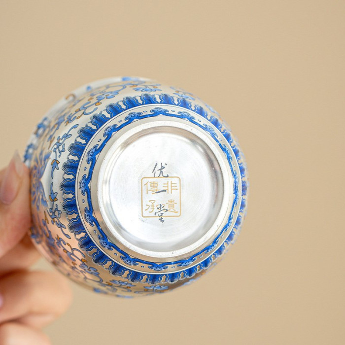 .纏枝蓮鎏銀主人杯水缸茶杯茶盞高F端單杯個人專用大容量高級品茗
