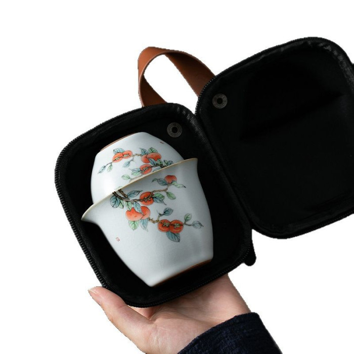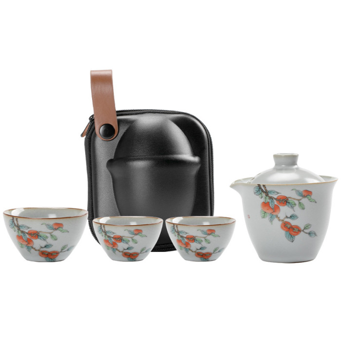 青花汝窰一壺三盃-柿子