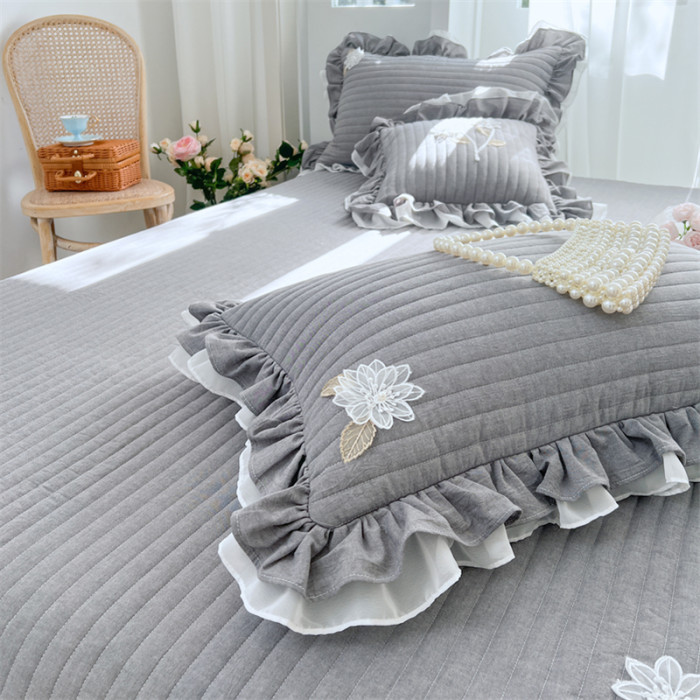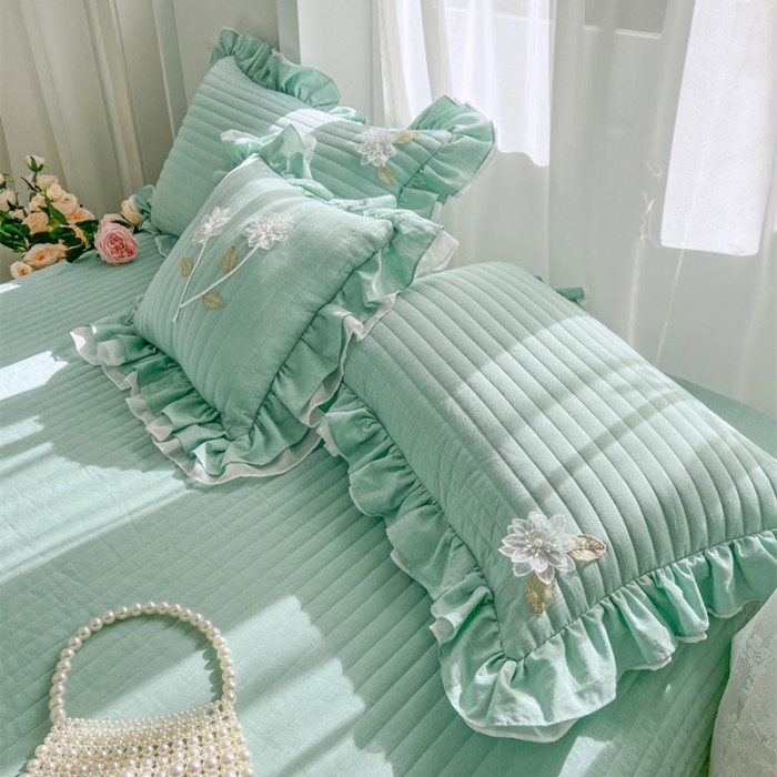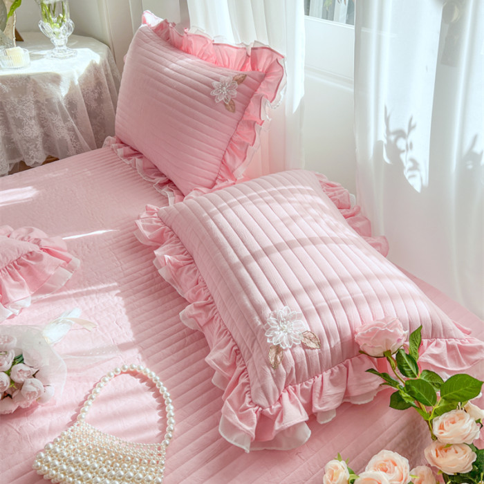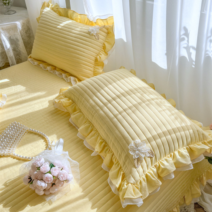 全棉水洗棉夾棉枕套一衹裝雙層花邊枕頭套純色公主床上用品48*74