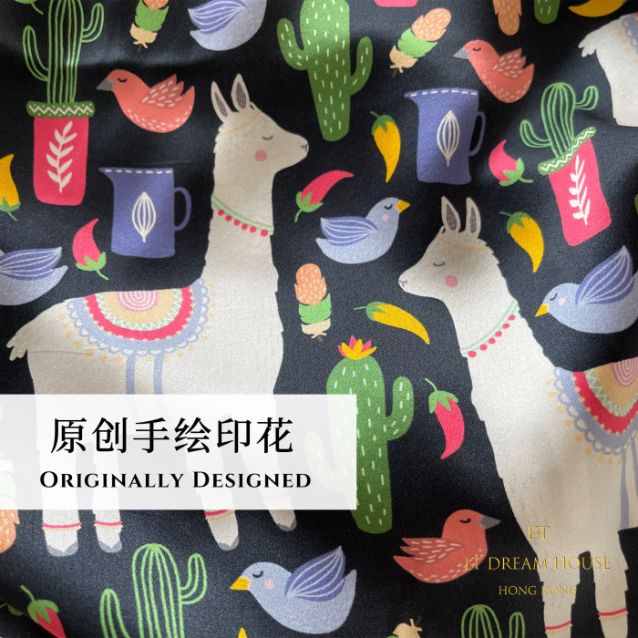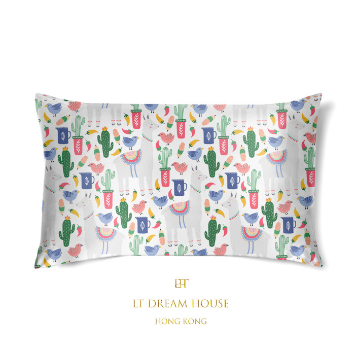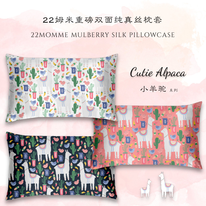 真絲枕套雙面桑蠶絲22姆米重磅輕奢原創插畫設計可愛羊駝印花兒童