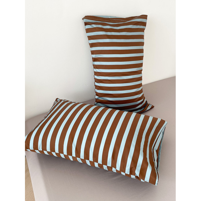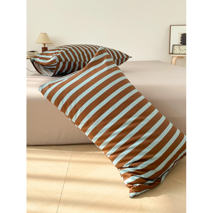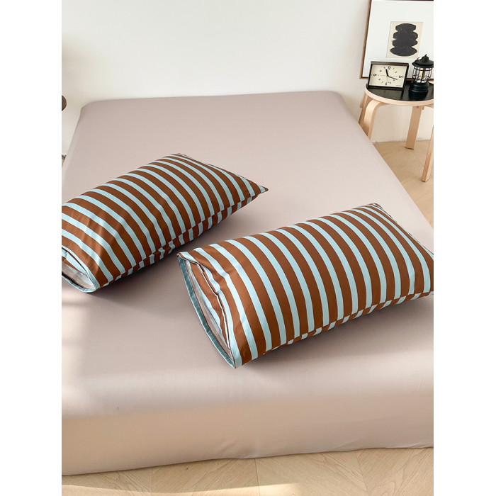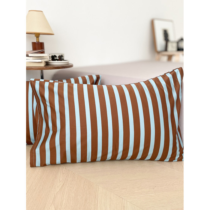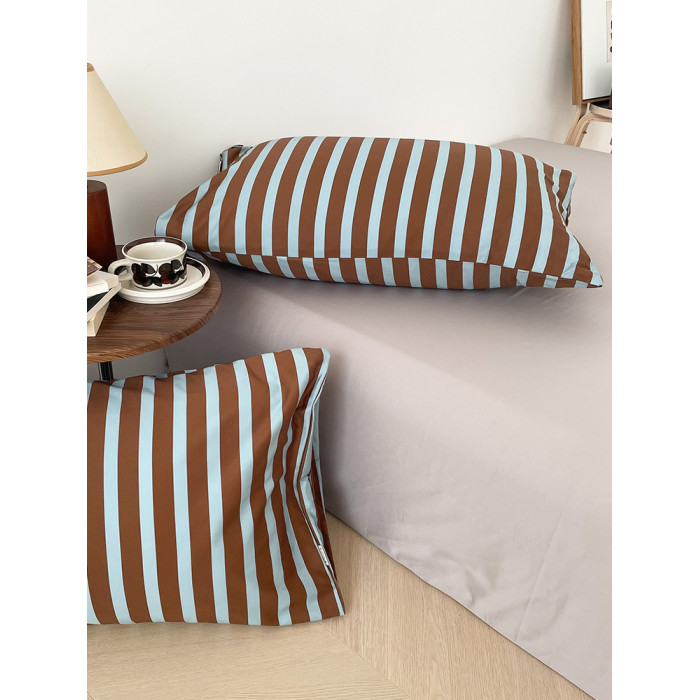 冰島筆記 美式撞色藍咖條紋60支長絨棉枕套74*48cm單衹新疆棉親膚