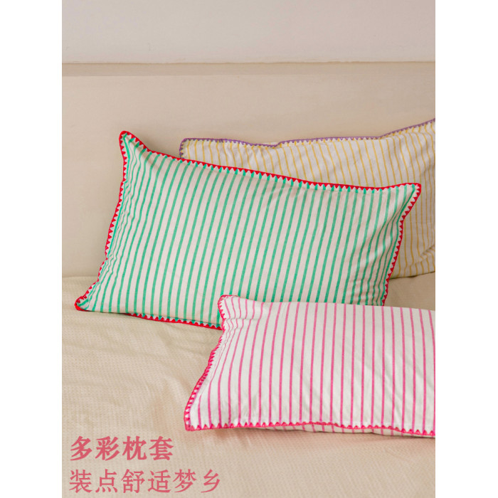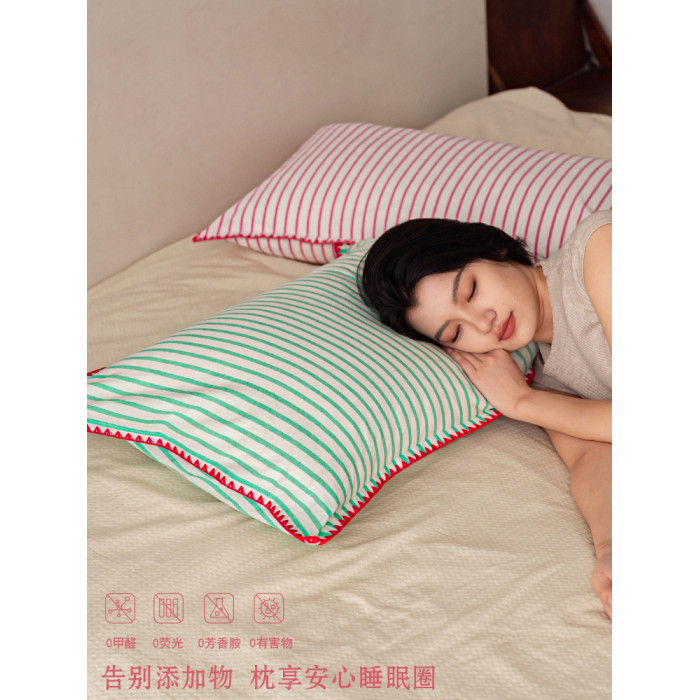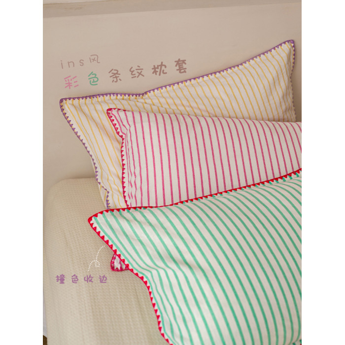 三色條紋收邊A類全棉枕套2025新款純棉枕頭套一對裝48cmx74cm清新