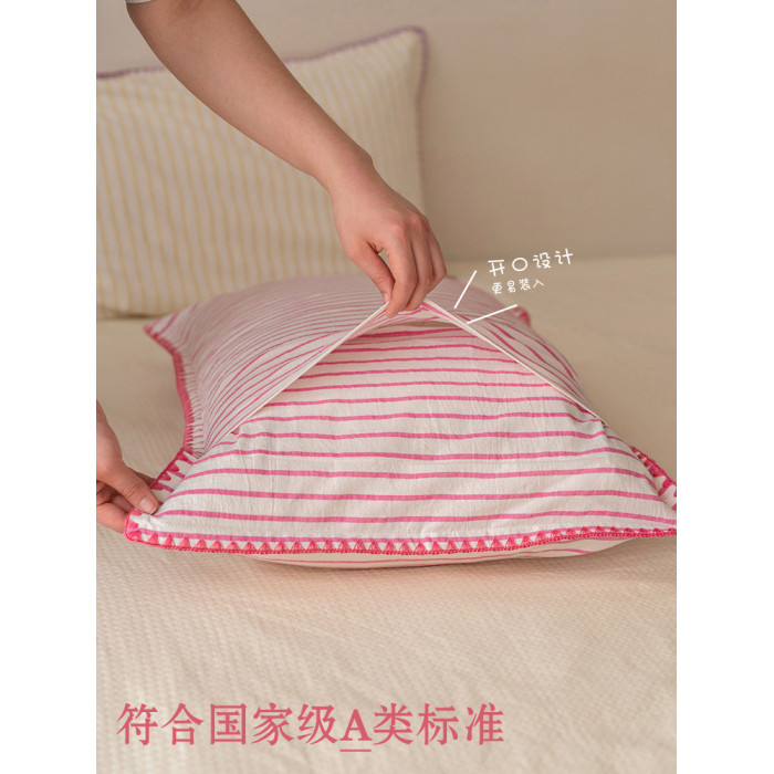 粉色條紋收邊【枕套】單條裝 48×74cm