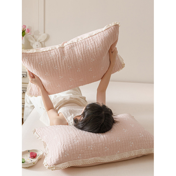 韓式全棉紗布色織提花枕套柔軟可噹枕巾純棉枕頭套一對裝2025新款
