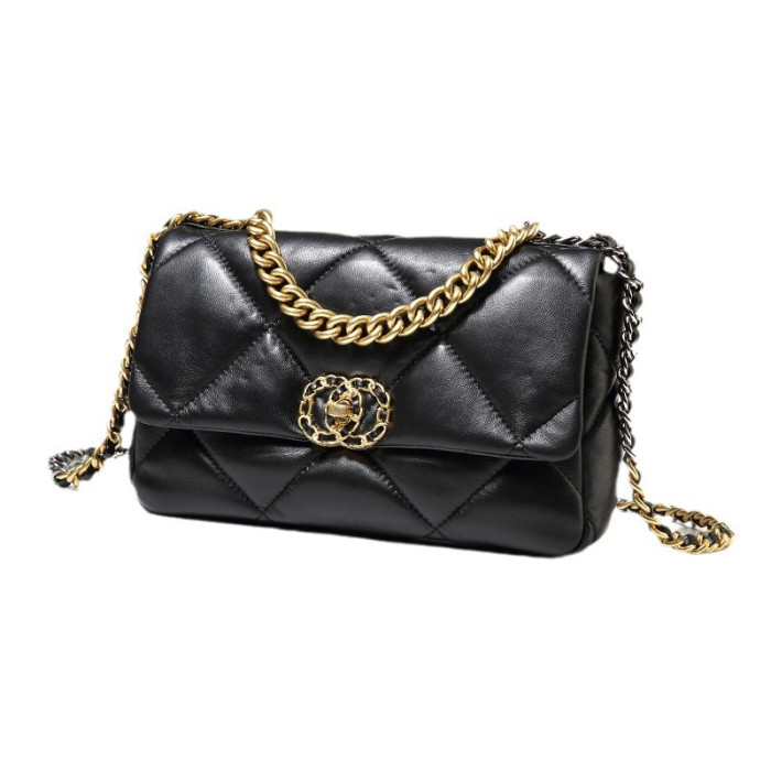 2024新款菱格鏈條羊皮小方包時尚女士單肩包簡約百搭真皮斜背女包