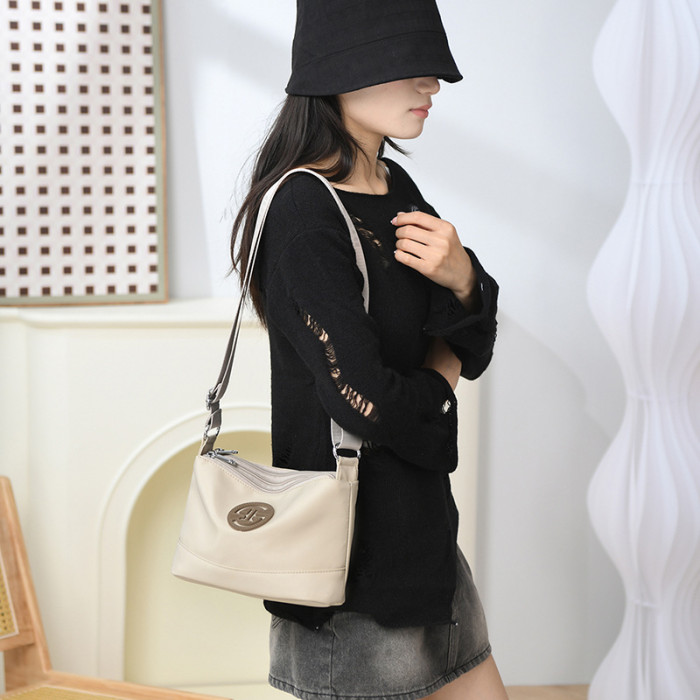 2024新款日常休閒女士斜後背包輕便簡約出行後背包百搭通勤純色單肩包
