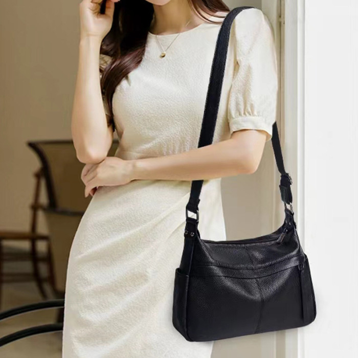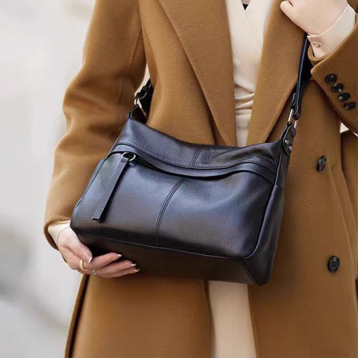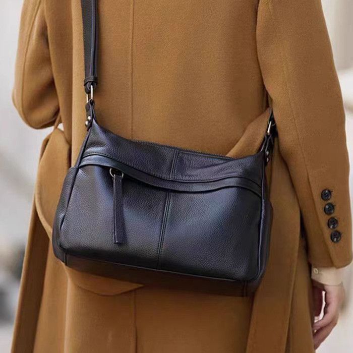 包包女夏天高級感大容量斜後背包 2024新款頭層牛皮百搭真皮單肩包