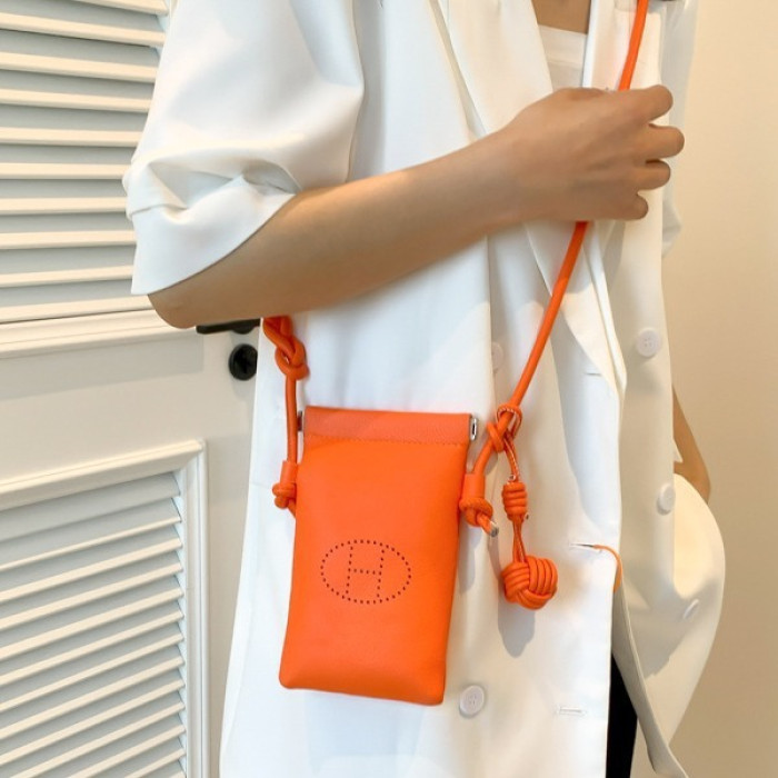2024軟皮小包包新款荔枝紋H字母手機包百搭斜背單肩包包爆款