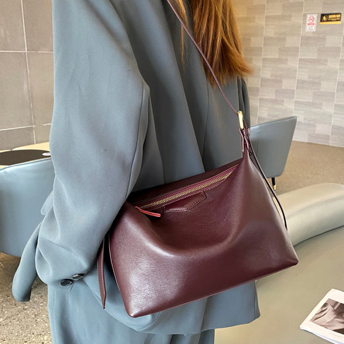 包包女2024新款頭層牛皮通勤百搭斜後背包 高級感真皮單肩枕頭包