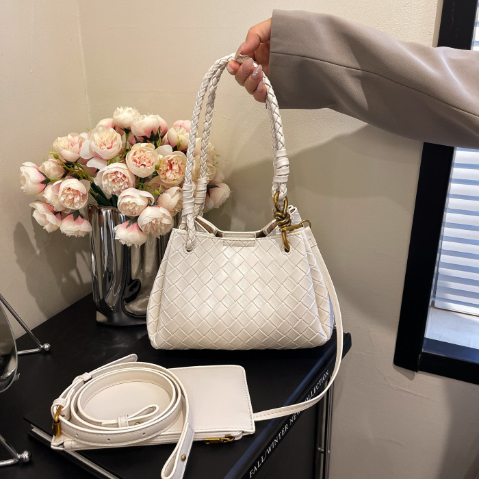 單肩包手工編織英倫風降落繖包潮新款金屬繩釦斜後背包菜籃子托特包