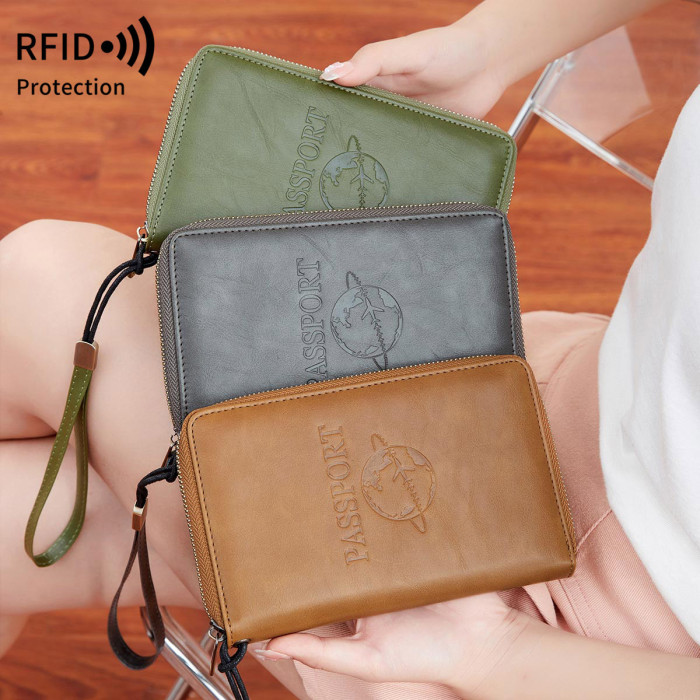 新款RFID護照包女士長款護照夾多功能大容量旅行証件包