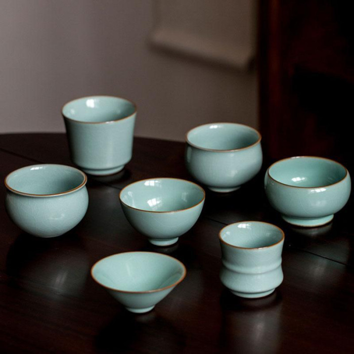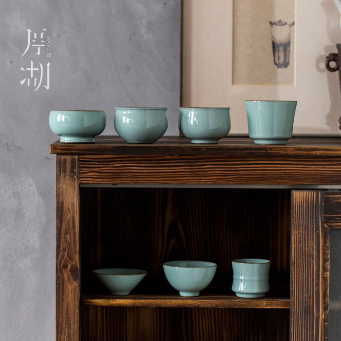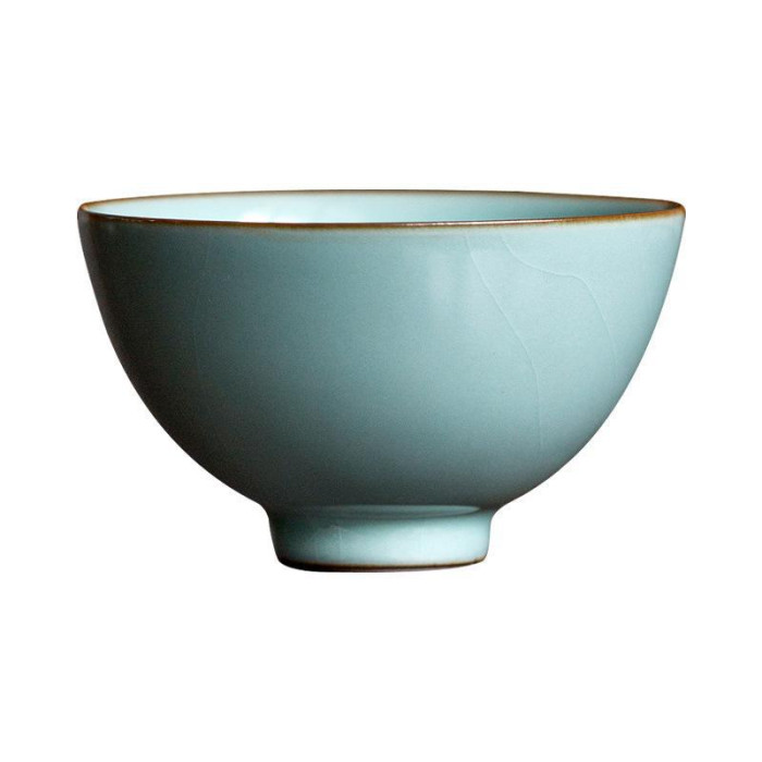 厚湖窰天青汝窰開片可養主人杯功夫茶杯單杯茶盞家用個人品茗杯