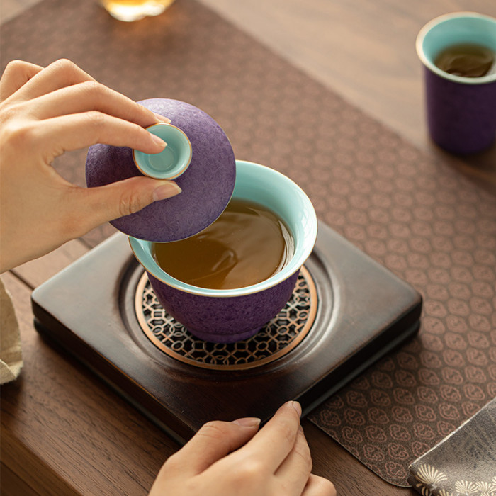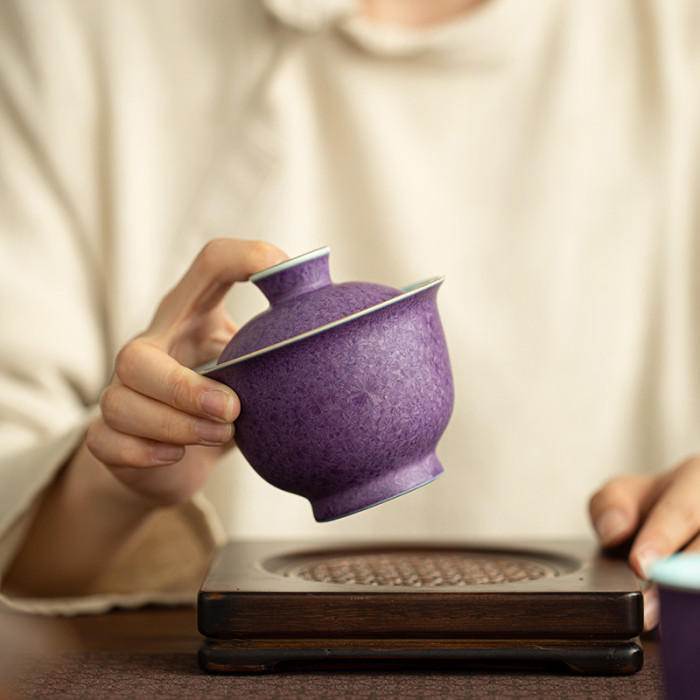 結晶釉-兩才蓋碗(紫結晶)禮盒裝