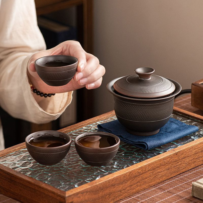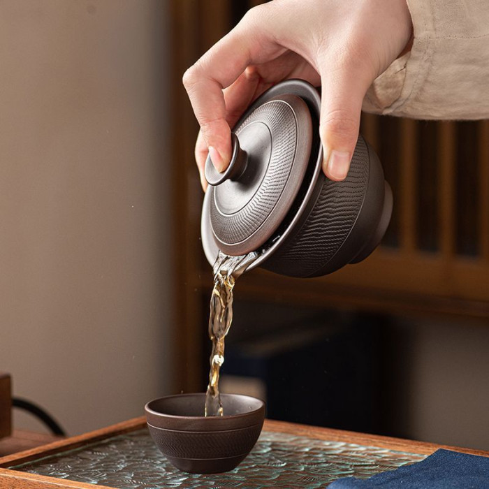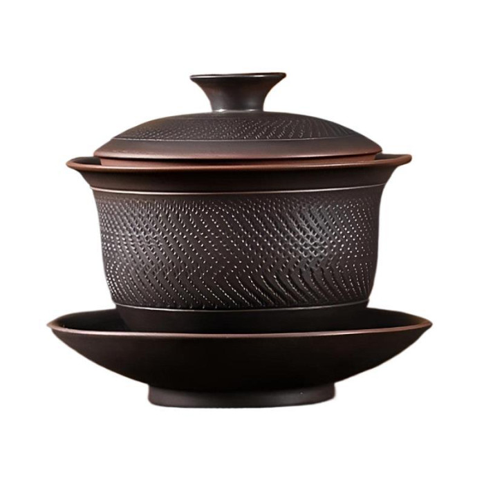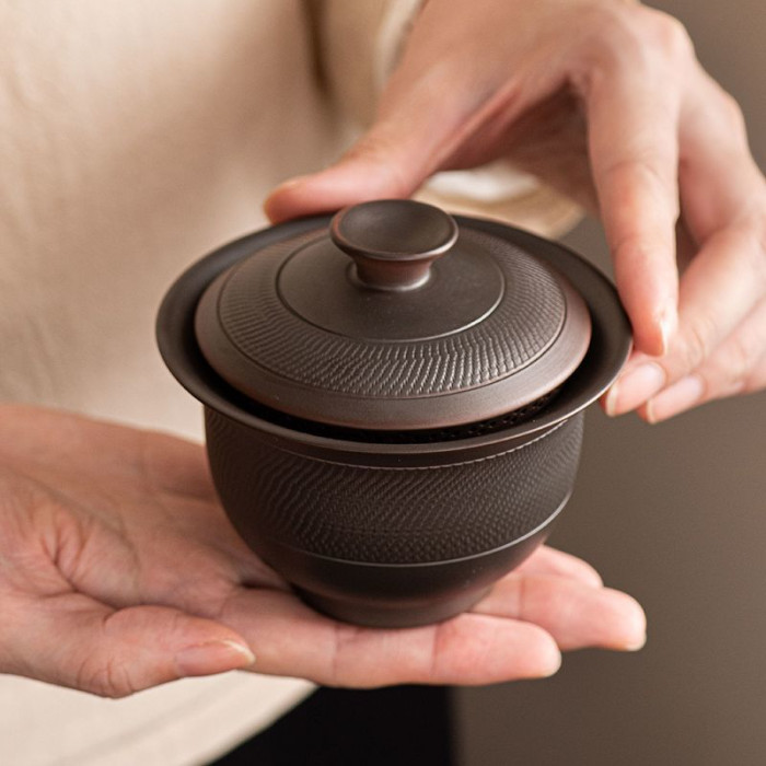 雲南紫陶茶具全手工雕刻全孔三才蓋碗不燙手可懸停高級新中式泡茶