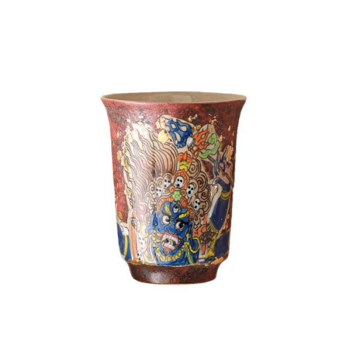 茶杯家用草木灰唐卡手繪大黑天聞香杯功夫品茗杯陶瓷主人杯泡茶具