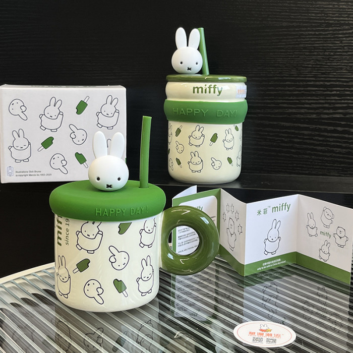 miffy米菲陶瓷杯內膽吸管女生高顔值大容量辦公室馬克杯咖啡杯