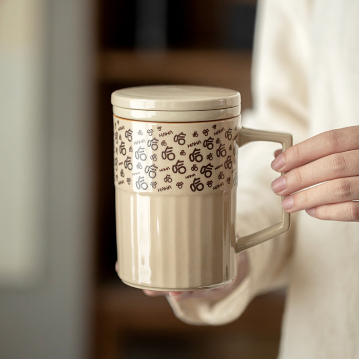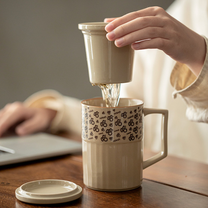 陶瓷哈哈馬克杯帶蓋茶水分離泡茶水杯周年慶紀念伴手禮品製定