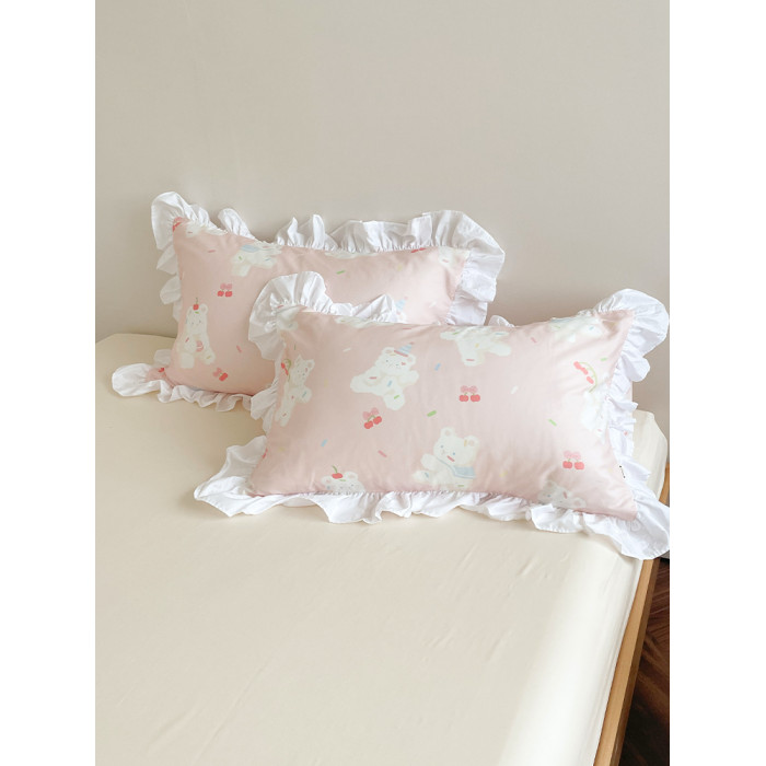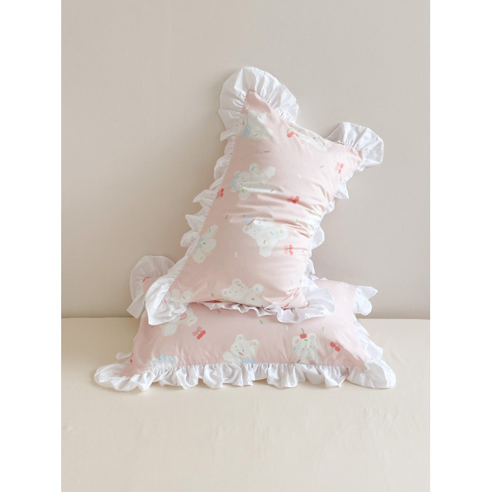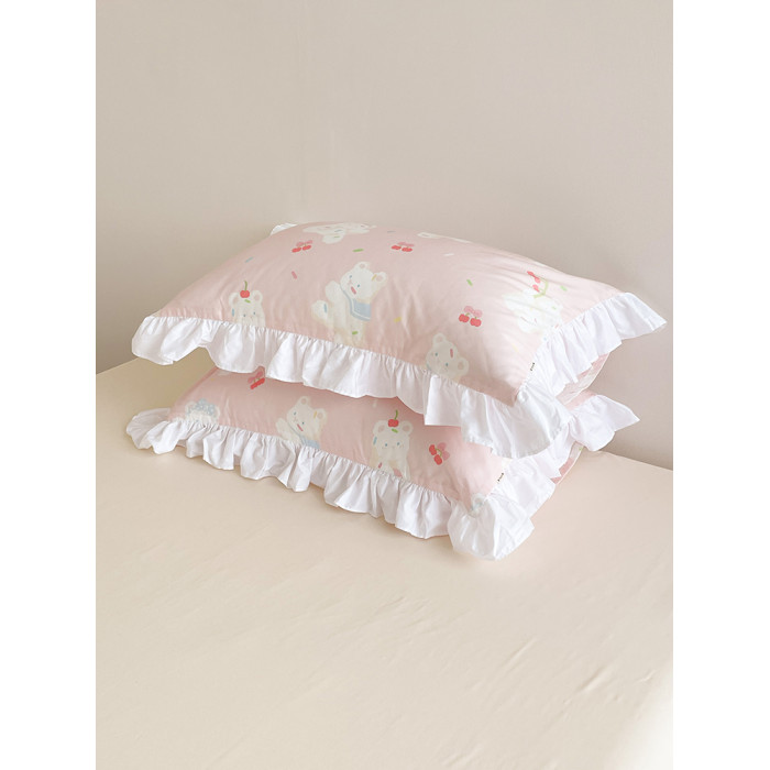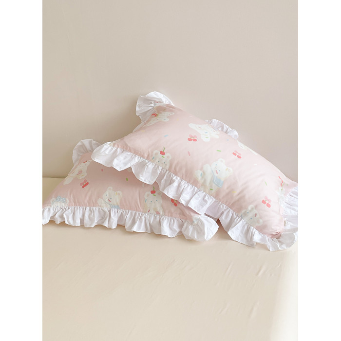 甜甜熊可麗 少女心原創甜美小熊全棉枕套花邊款粉色枕芯罩單衹裝