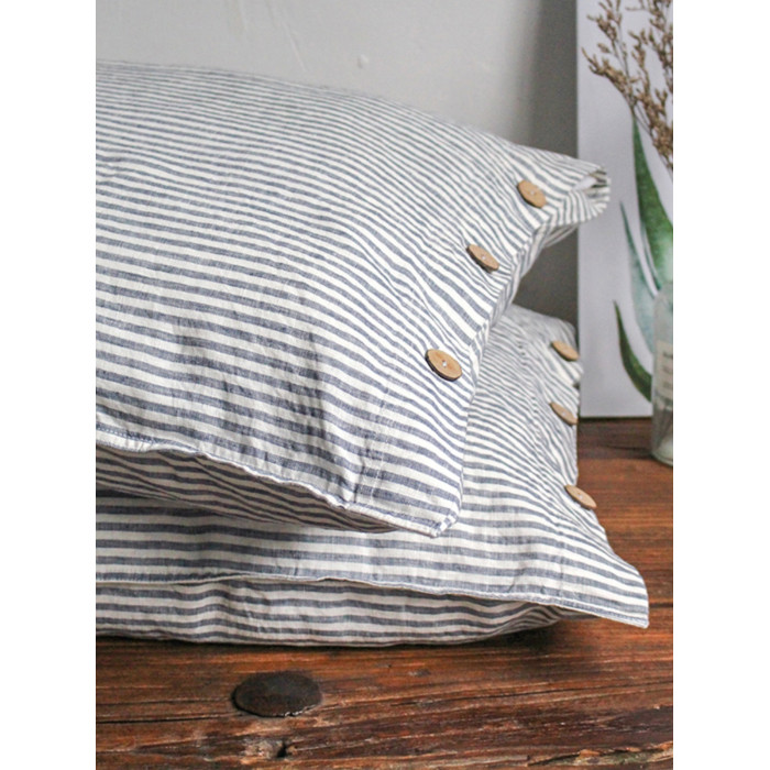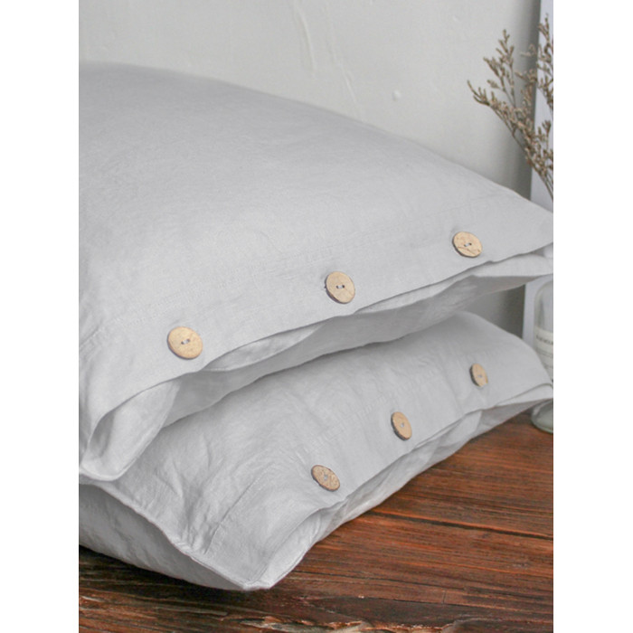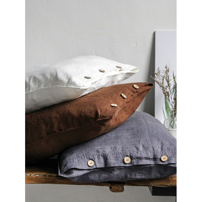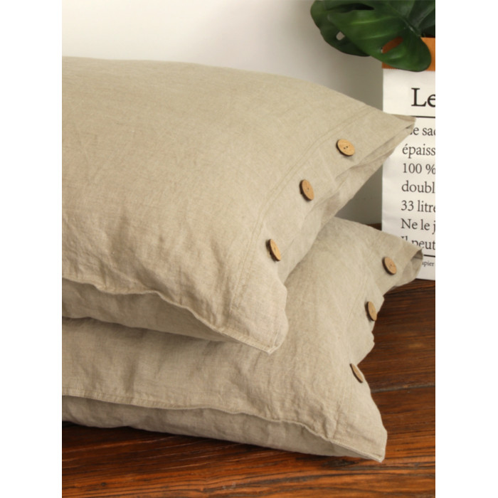 素麻雨巷 水洗純亞麻枕套椰殼紐釦款單人枕套抑菌抗過敏親膚透氣