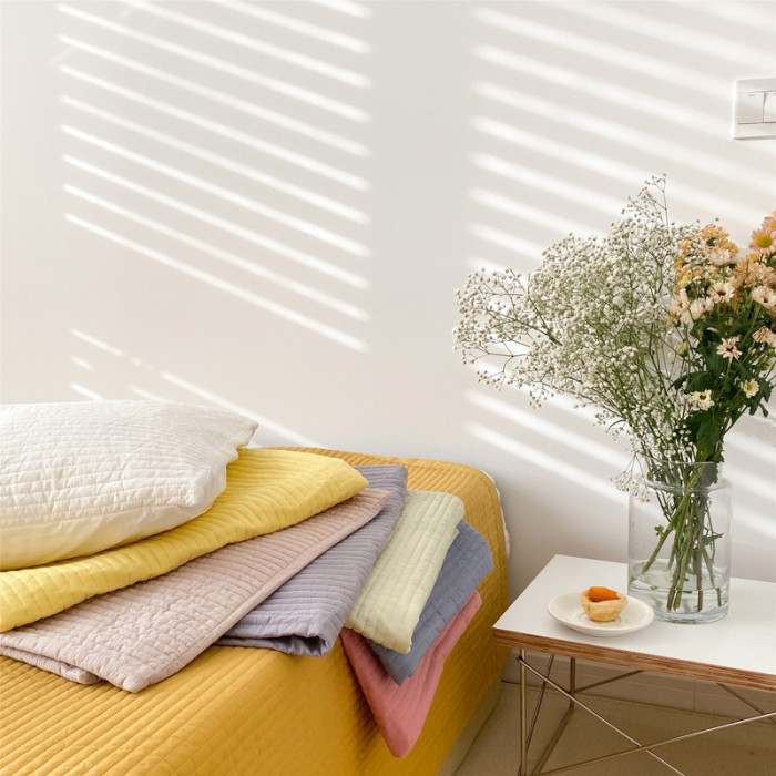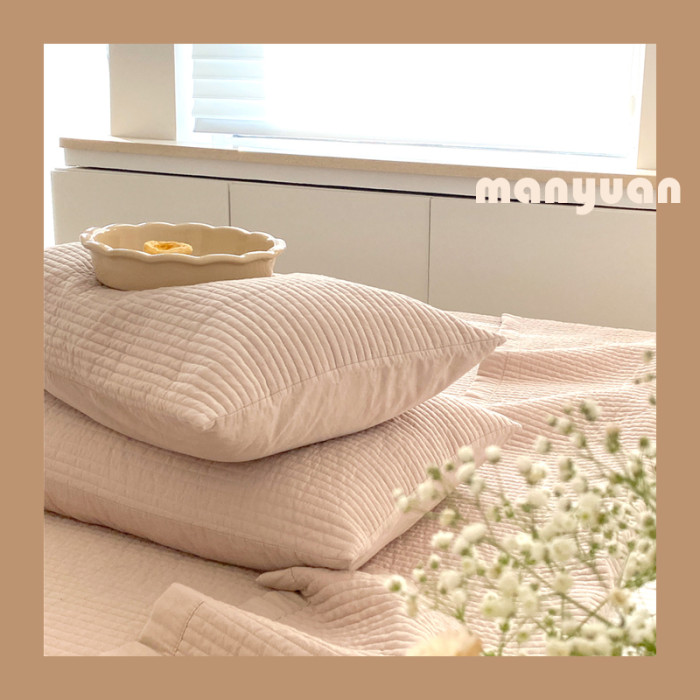 軟糯絎縫枕套全棉韓國夾棉砂洗純棉枕頭套 一對裝不含芯48*74純色