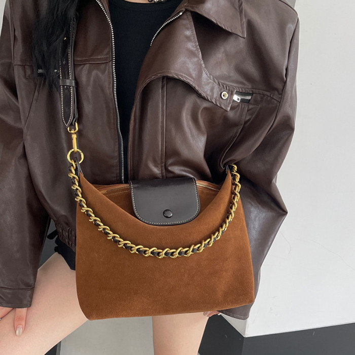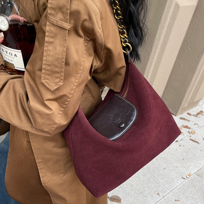 款式1 包包女士2024新款磨砂牛皮女包托特包斜挎包真皮大容量單肩鏈條包